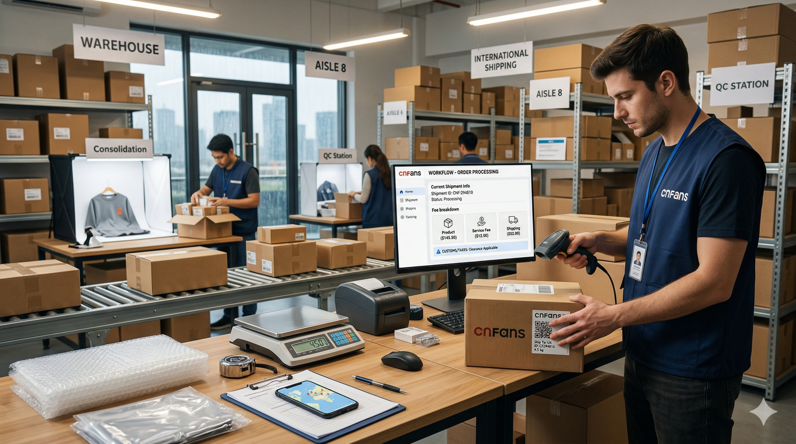 - Réception : les produits arrivent à l’entrepôt Cnfans en Chine.