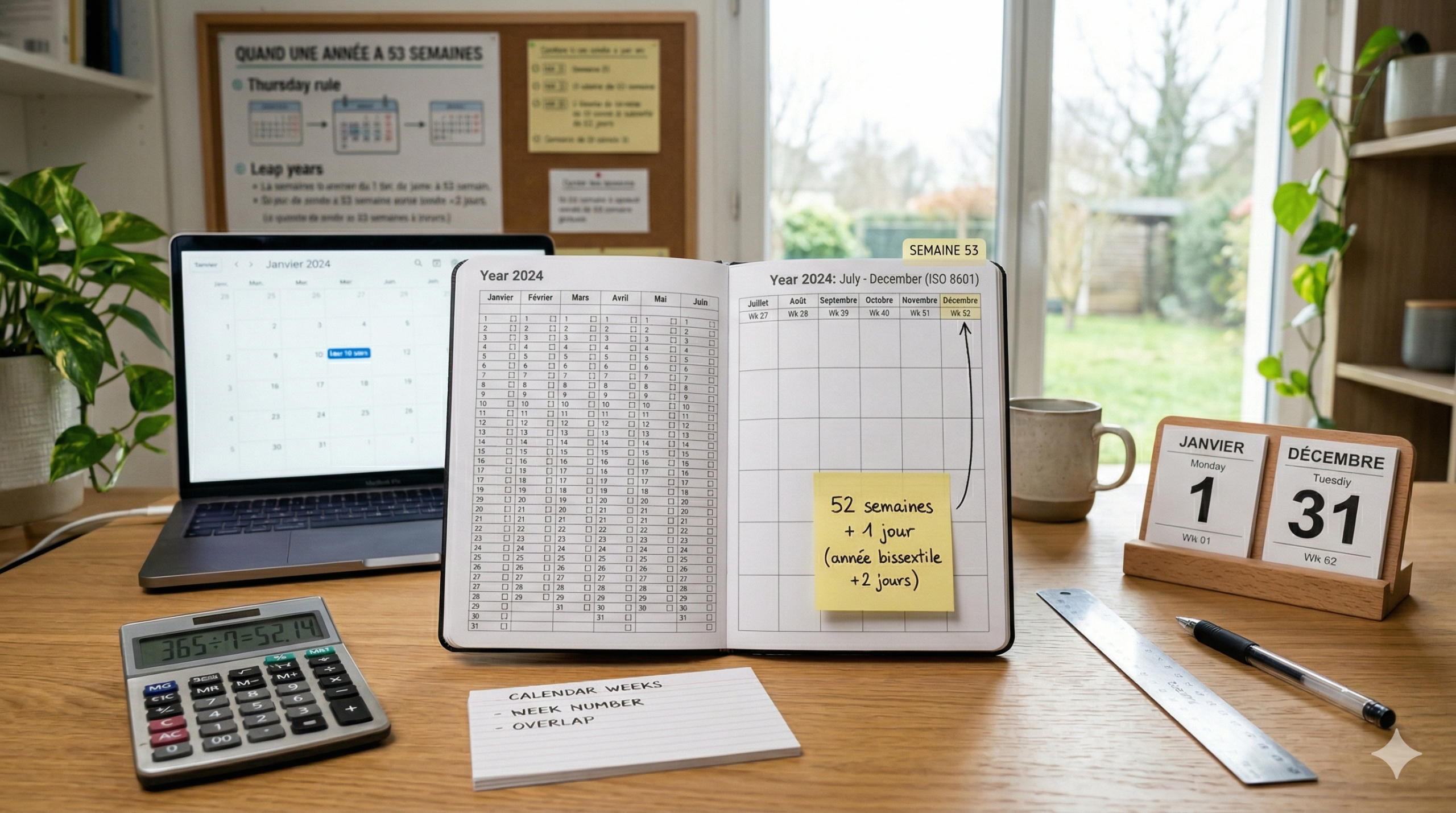 Le piège le plus fréquent : croire que l’année se termine toujours à la semaine 52. Ce n’est pas le cas. Certaines années vont jusqu’à la semaine 53. Un autre piège consiste à penser que la semaine 1 commence toujours le 1er janvier. Elle peut commencer jusqu’au 4 janvier ou dès le 29 décembre.