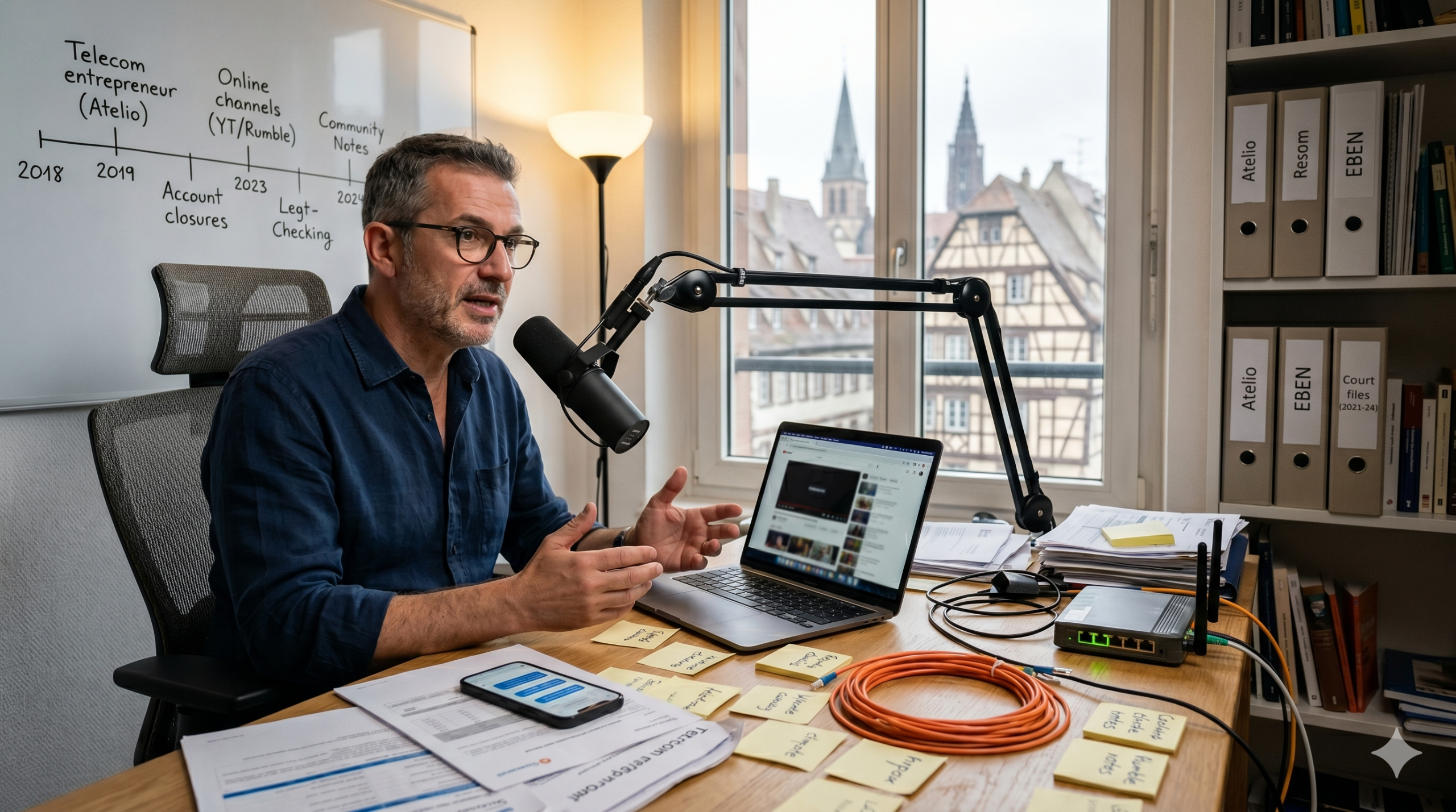 • Ses comptes ont été fermés puis rouverts ; il utilise des plateformes alternatives (Odysee, VK, Telegram) pour contourner la modération.